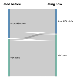 图:根据 2019 年第三季度的调查,80% 的 Android Studio 用户和 61% 的 VS Code 用户表示他们倾向于选择自己熟悉的 IDE。