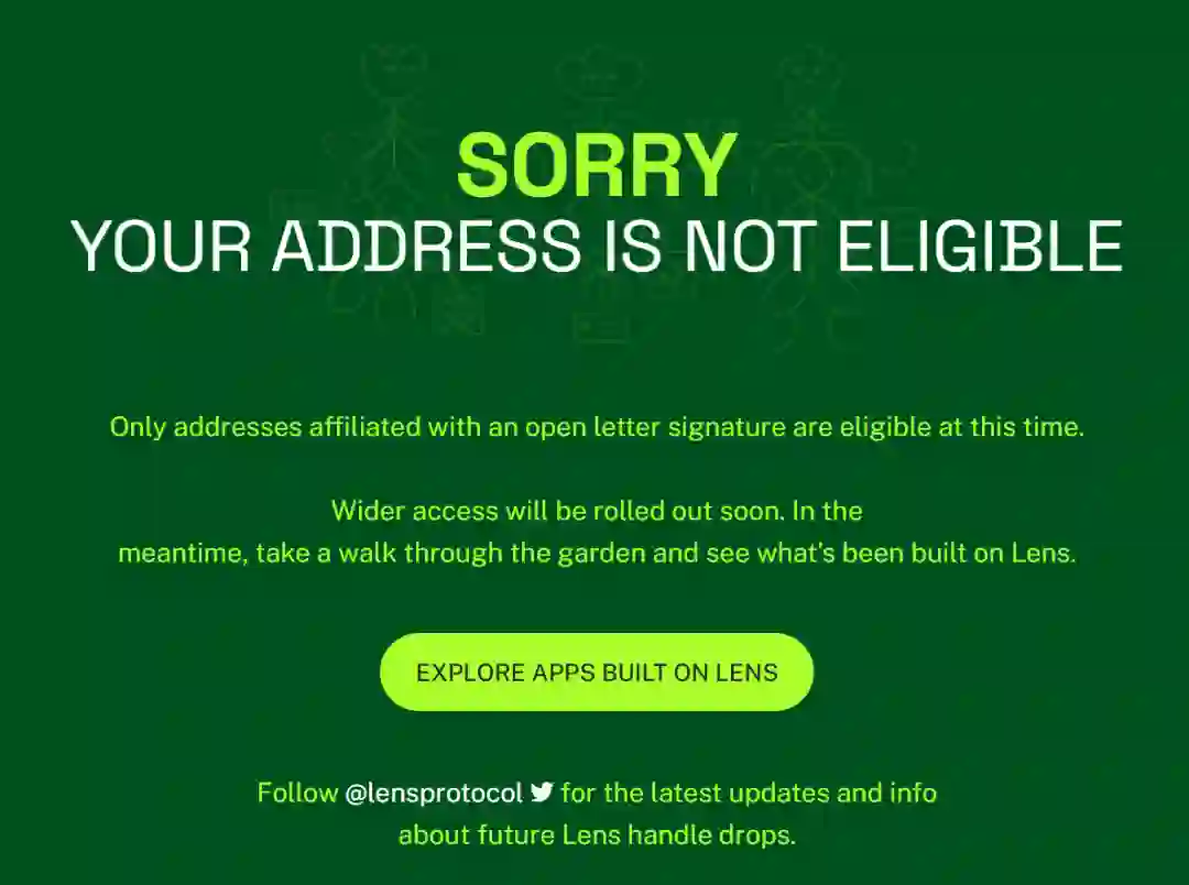 「Lens 新用户每个月以 1-2 万的数量增长,这部分来自签署 Lens 公开信和合作项目活动。新用户现在有三个渠道可以成功注册:去 Lens 官网签署公开信等待发放名额,等待时间不确定;去 Opensea 二级市场购买;关注 Lens 官方的空投活动。」