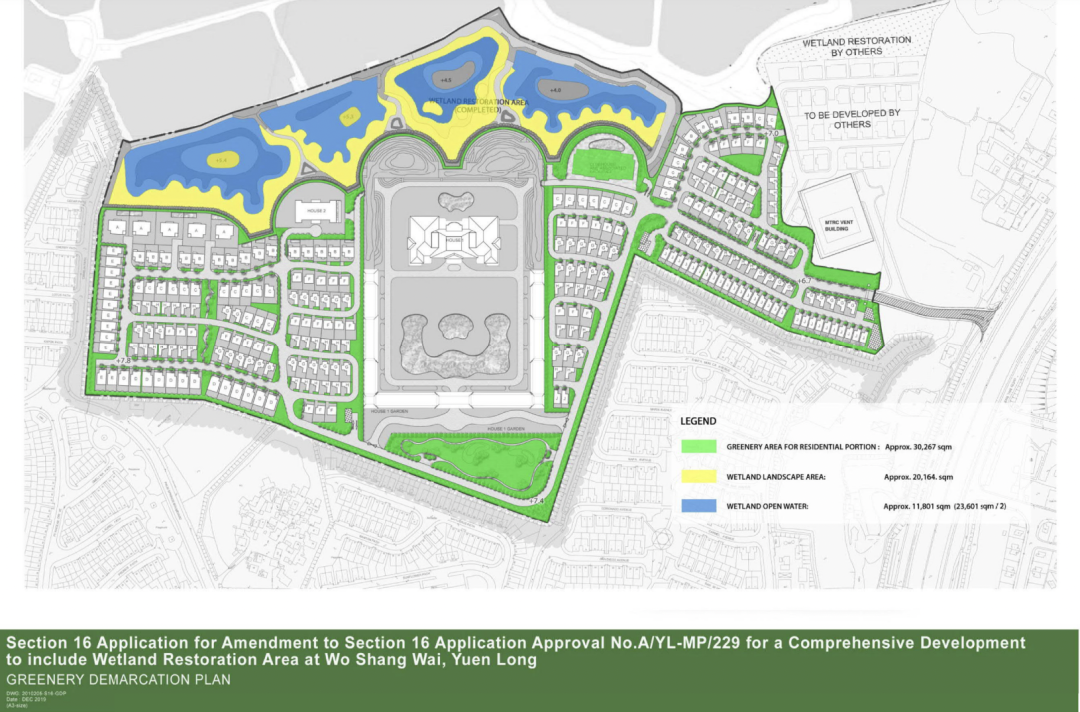 在恒大购入并补地价之前,元朗地块在前东家恒基兆业几经与规划委调规协商,都未能成功「改划」开发。其中一个重要原因是该地块涉及湿地修复及保育。