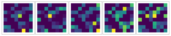 这五张图分别对应了test中五张图片的隐层压缩后的图像。