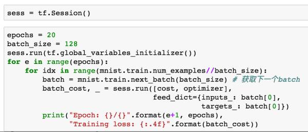至此,一个简单的AutoEncoder就构造完成,接下来我们可以启动TensorFlow的graph来进行训练。