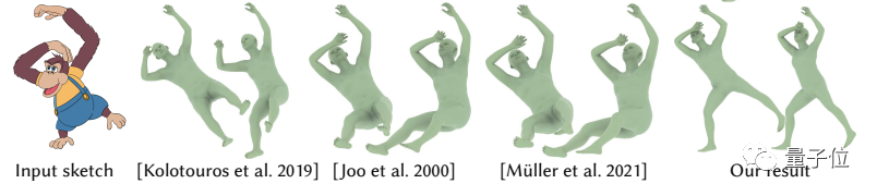 对于猴子“扭曲”的下肢部分,这些方法都出现了理解偏差——Sketch2Pose完胜。