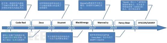 在图2所示为历年来的重大网络安全事件,它们以恶意代码为核心开展网络攻击,从而使得恶意代码具有重要的战略价值。近年来人工智能热潮的再度兴起,对恶意代码的免杀、传播、驻留/持久化、隐蔽通信和精准打击等能力产生了显著的助力效应,并由此引发了新一轮的由人工智能赋能的恶意代码攻防研究,这对传统的恶意代码攻防技术发展将产生重要影响。