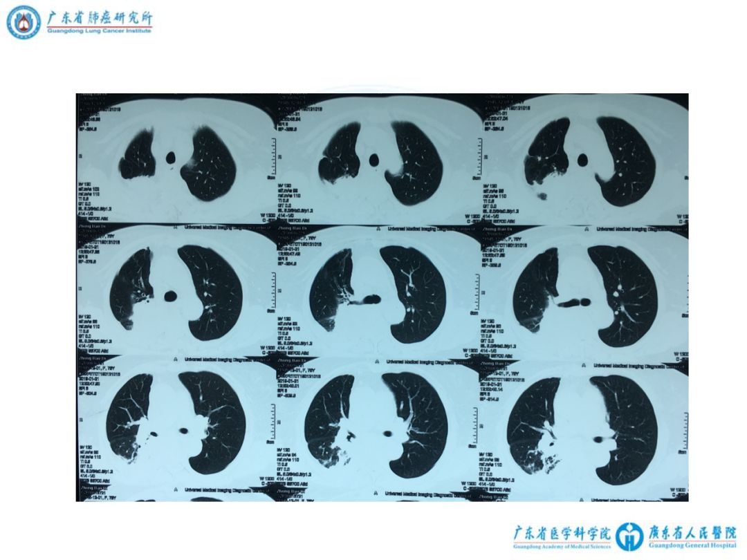 1)女性, 73岁,非吸烟者,PS 1分,初治。