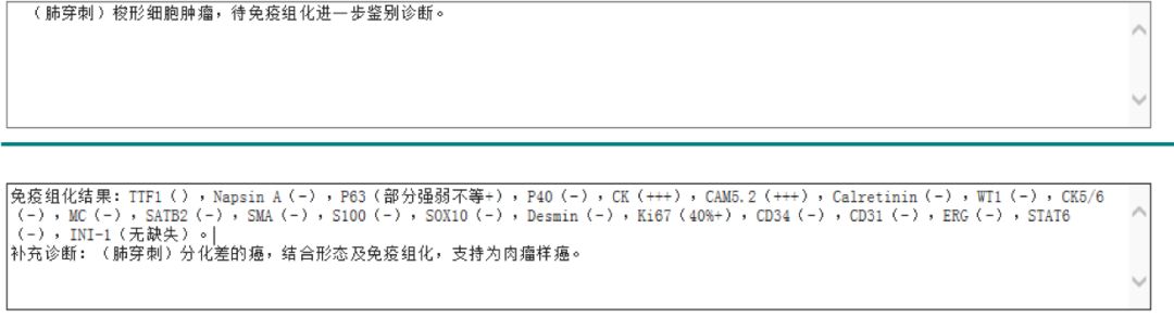 诊断:右上肺肉瘤样癌CT4N2M1a(胸膜) IVA期(第八版),MET 14exon 移码突变(NGS 丰度10.79%)。