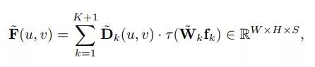 在这里,文章将他当做 soft mask 来用,用 mask 提取后再用一个 linear operator 来讲这些 feature map 映射到一个更低维的空间,至此,local latent descriptor 就被生成了。