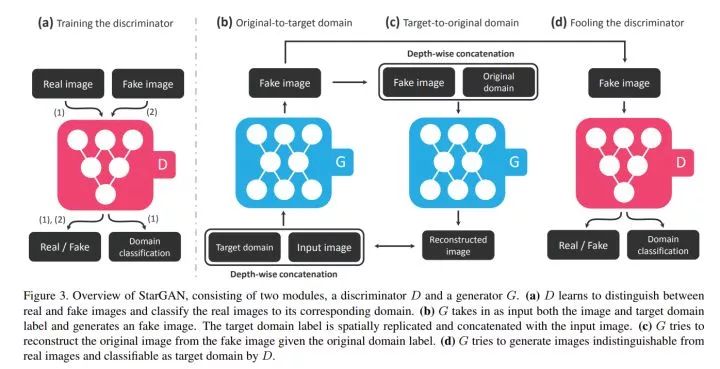 随后作者提出,如果要 cross domain 来训练 GAN,太麻烦了,n 个 domain 需要 n(n-1) 个 translator,作者在本文提出了一个可以解决 multiple domain translation 的 translator。
