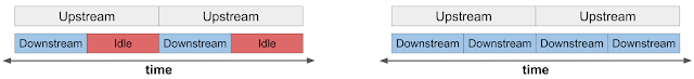 左:未使用数据回送,下游计算能力闲置率达 50%;右:使用回送因子为 2 的数据回送,利用下游计算能力