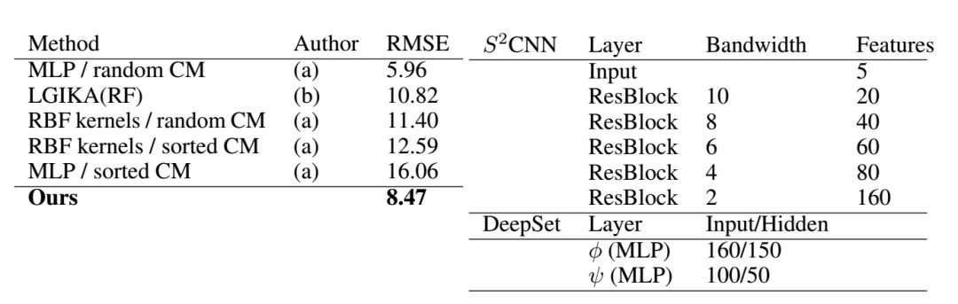 2. 以RMSE作为指标,将提出方法与一些其他的方法做比较,如表2所示。从表中可以看出,文中提出的算法优于所有基于内核的方法,以及在排序Coulomb矩阵上训练的MLP算法。只有基于随机Coulomb矩阵训练的MLP才能获得更优的效果。然而,对随机排列的充分抽样随着N呈指数增长,因此这种方法不太可能在大的数据上进行扩展。