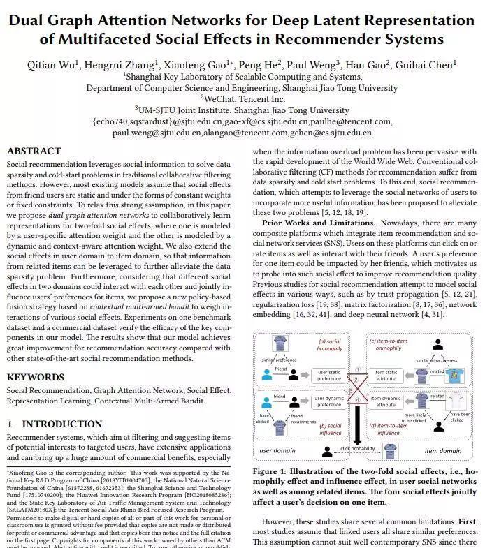 论文名称:Dual Graph Attention Networks for Deep Latent Representation of Multifaceted Social Effects in Recommender Systems