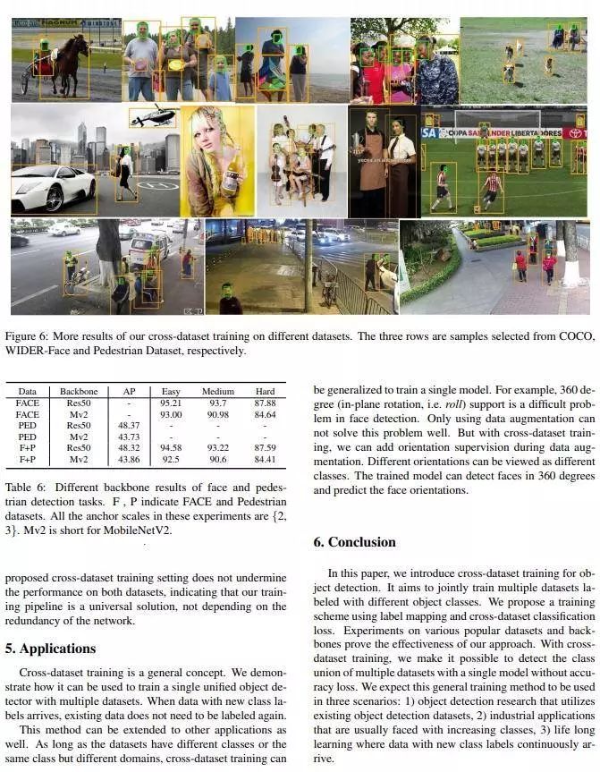 给定不同的数据集,跨数据集训练的目标是检测不同类别的并集,而不需要为所有数据集标记所有类别。通过这种方式,可以利用现有的数据集来训练模型,然后应用于合并之后的数据集,并且避免了在新数据集上进行标记。这篇论文在PASCAL VOC、 COCO、 WIDER FACE和WIDER Pedestrian这些数据集上实验了单数据集和跨数据集这两种训练模式。实验结果表明与独立训练相比,这篇论文提出的跨数据集训练框架可以同时在这些数据集上实现类似的性能表现。