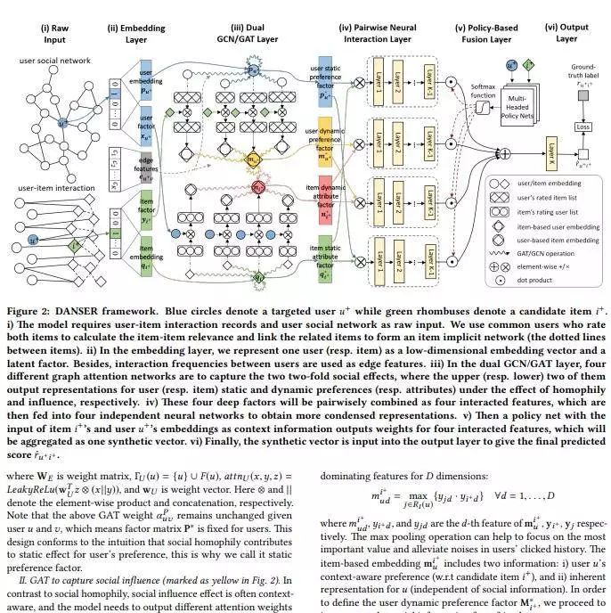 图神经网络已经取得了巨大的成功现在很多领域得到了应用。作为与图最相关的推荐,很多工作也尝试引入GNN来更好的学习节点表示。本文算是比较早的引入GNN来进行推荐的论文,发表在WWW2019上。作者探索了社交影响中在user-item二部图上影响,总共定义了4种社交影响,在通过GNN学习到表示之后,作者利用了强化学习技术来实现动态融合。实验结果验证了本文算法的有效性。