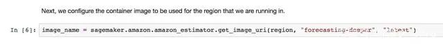 使用内置算法DeepAR,我们需要设置容器的名称 forecasting-deepar: