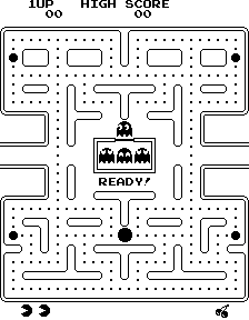▲图1-2 街机游戏吃豆人(本图片改编自https://en.wikipedia.org/wiki/Pac-Man#Gameplay)