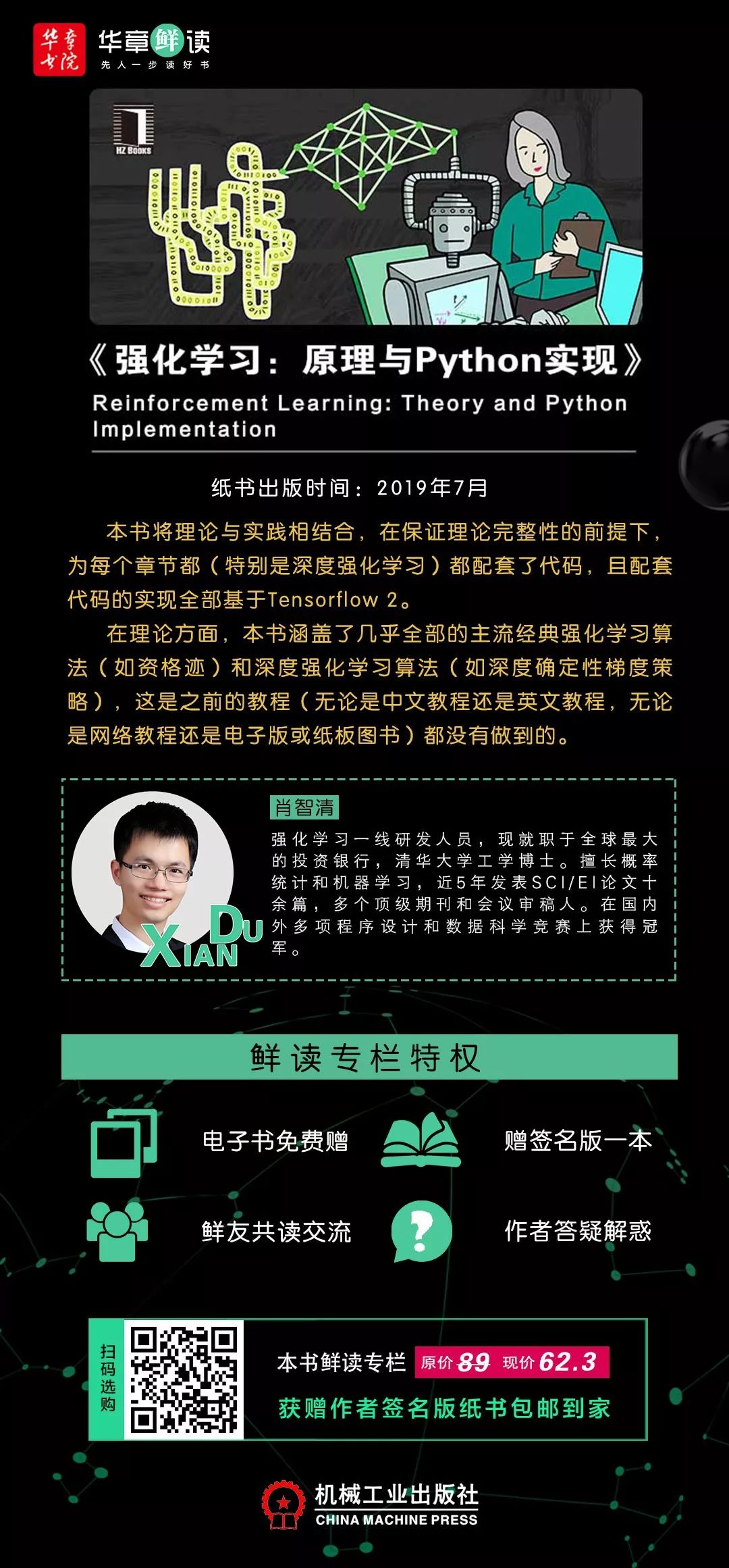 关于作者:肖智清,强化学习一线研发人员,清华大学工学博士,现就职于全球知名投资银行。擅长概率统计和机器学习,于近5年发表SCI/EI论文十余篇,是多个国际性知名期刊和会议审稿人。在国内外多项程序设计和数据科学竞赛上获得冠军。