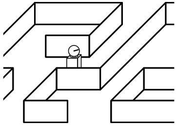 例如,一个走迷宫的机器人在迷宫里游荡(见图1-1)。机器人观察周围的环境,并且根据观测来决定如何移动。错误的移动会让机器人浪费宝贵的时间和能量,正确的移动会让机器人成功走出迷宫。