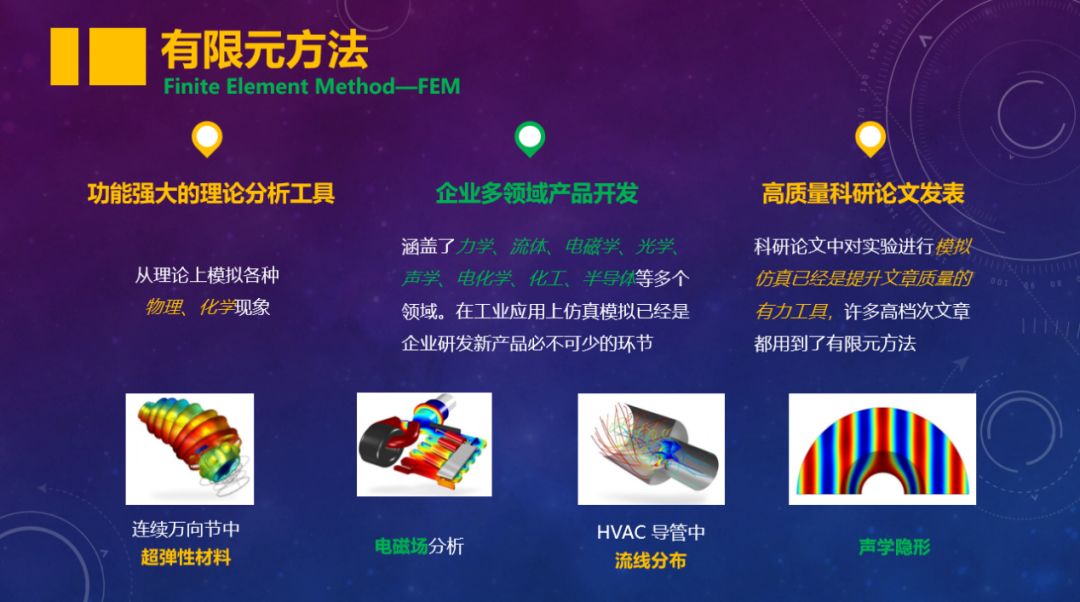 A:有限元方法是一种一般性的数值计算的方法,用来求解各种偏微分方程,理论上只要是能用偏微分方程描述的物理化学过程都可以都用有限元方法求解。有限元不仅在各个物理学科和工程领域这些传统领域有广泛的应用,而且现在越来越多的运用到交叉学科的研究中,例如柔性传感器件,能源器件,生物工程,微流控等等几乎目前所有的热门研究领域。