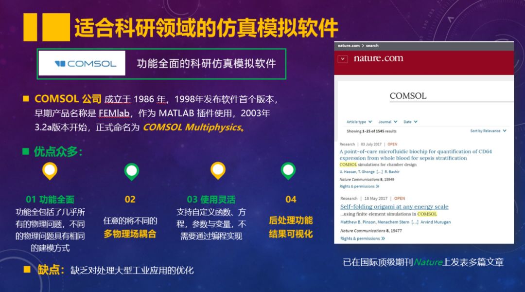 它是一款功能强大的通用多物理场仿真软件,用于仿真模拟工程、科学研究、数值计算等各个领域的设计、设备及过程