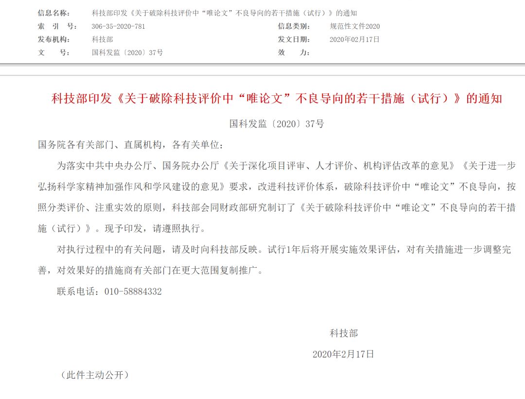 针对近年来逐渐加剧的学术不良现象,科技部于2月17日印发《关于破除科技评价中“唯论文”不良导向的若干措施(试行)》(以下简称“措施”)。