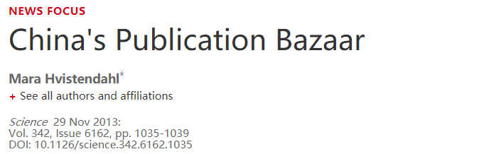 早在2013年,Science就有一篇文章,揭露了中国蓬勃发展的学术黑市,其中包括见不得人的机构、腐败的科学家和编辑,将提交或已经被接受的论文高额出售给在读的医学博士生。Bik认为这次发现的“论文作坊”应该就是这种形式。