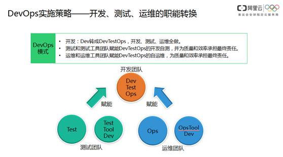 为了解决DevOps落地问题,云效跟开发、测试、运维团队一起,为开发服务,让他们自运维、自测,提升效率。