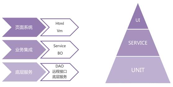 在理解分层自动化之前,我们先看自动化测试金字塔,其中UI代表页面级系统测试,service代表服务业务测试(接口测试),unit代表单元测试。金字塔越高,表示需要投入的精力和工作量越大。分层自动化测试倡导的就是,将系统分层,根据层次特点用合适的自动化方法进行测试的一种测试策略。