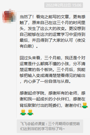 “三个月前,我还是个对运营什么都搞不懂的小白,连运营的各个岗位都区分不清。现在,我脑袋里装了许多运营知识和方法论,还拿了班级第一!”