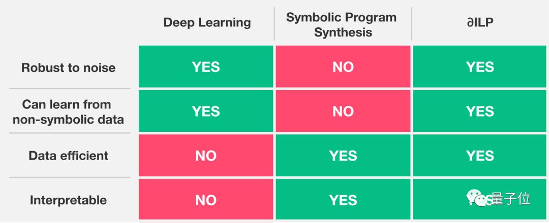 神经网络的强大功能有目共睹,但它往往需要大量与目标测试领域数据分布相似的训练数据;而用于符号领域的归纳逻辑编程只需少量数据,却无法对抗噪声,适用领域也很狭窄。