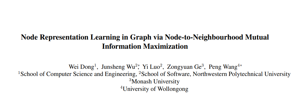 在CVPR 2022: Node Representation Learning in Graph via Node-to-Neighbourhood Mutual Information Maximization文章中,作者提出了一种简单有效的自监督节点表示学习策略框架,其通过直接最大化节点及其邻域的隐藏表示之间的互信息,并从理论上可以证明它与图平滑的联系。基于对比学习中的InfoNCE损失函数,文章提出的策略框架可由设计的代理损失函数进行优化,在此正样本的选择对于表示学习的质量和效率至关重要。为了选择高质量的正样本,文章中提出了一种拓扑感知的正样本采样策略,该策略通过考虑节点之间的结构依赖性来对邻域进行正样本采样,且在模型训练之前即可完成采样工作。文章中的采样策略甚至可以从邻域中仅仅采样一个最重要的正样本进行随后的模型训练,在这种极端的采样操作下,文章中的模型完全避免了具有高空间复杂度的邻域聚合算子。文章中的方法在各种节点分类数据集上取得了良好的性能。值得一提的是,将文章中的损失函数应用于基于多层感知机的节点编码器,可以比现有的解决方案快几个数量级。