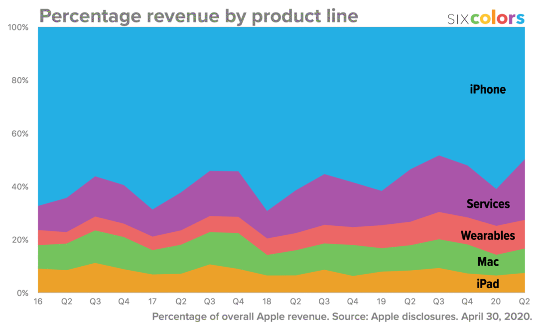 至于推出时间较早的 Apple News+ 也一直不温不火,最近还损失了一家知名出版商《纽约时报》,后者表示 Apple News+ 的新闻订阅策略无法让他们直接与读者产生联系,所以觉得从 6 月 29 日开始不再和 Apple News+ 合作,之前的文章也会撤下。以服务为基础的商业模式和以硬件为基础的商业模式之间存在着战略上的紧张关系:前者应该最大限度地扩大其市场(比如说,制造更更多人们负担得起设备),而后者应该最大限度地扩大硬件的差异化。iPhone 诞生以来的几年里苹果便是凭借着过强的设备性能(A 系列芯片)、优美的外观设计、软硬件协调(iOS 系统)等差异化特点将 iPhone 捧成利润率最高的智能手机,即使卖到破万的 iPhone X 销量并不高,但凭借极高的单价还是为苹果贡献了不错的利润。