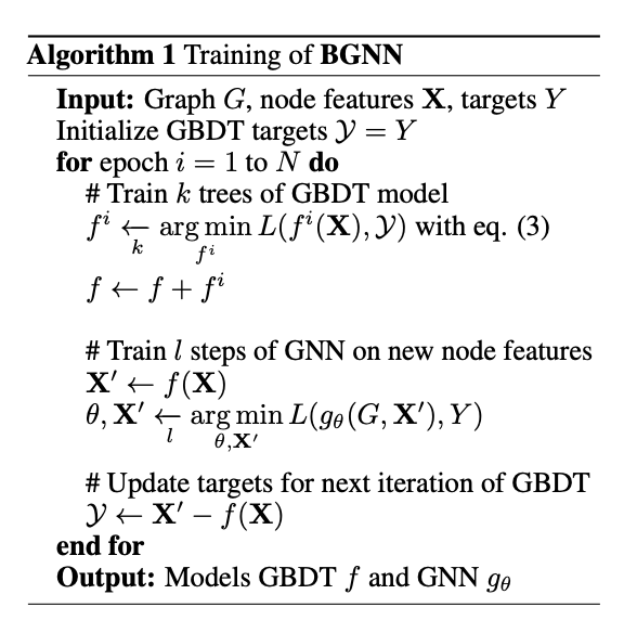 下图算法 1 展示了 BGNN 模型的训练算法,它可用于半监督节点回归与分类这样的任意节点级别的预热问题。