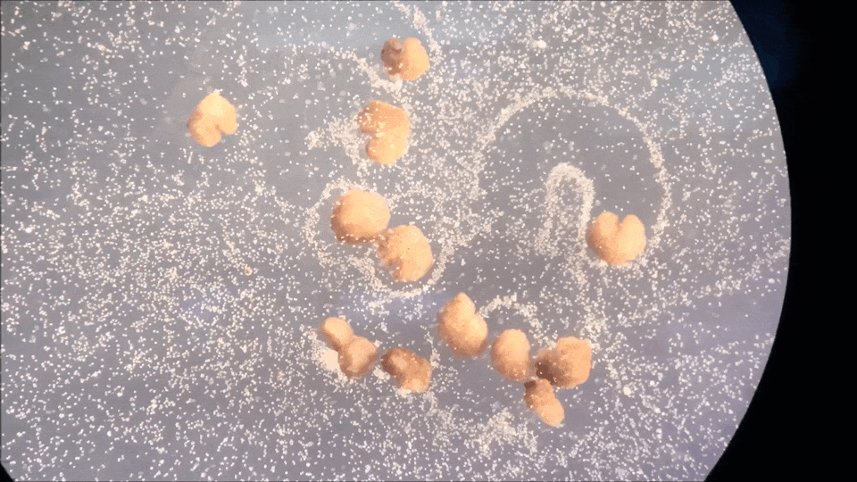 而美国佛蒙特大学和塔夫茨大学的研究者,则利用青蛙的表皮细胞和心肌细胞,造出了全球首批活体机器人「Xenobot」,形似豆子的它们,竟然能够实现自我「繁殖」。