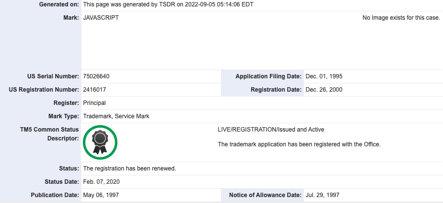 然而,该商标是笼罩在世界最流行的编程语言上的一片“乌云”。遵纪守法的工程师们不得不小心翼翼地来避免使用它——这导致 ECMAScript 这样的混淆性术语。