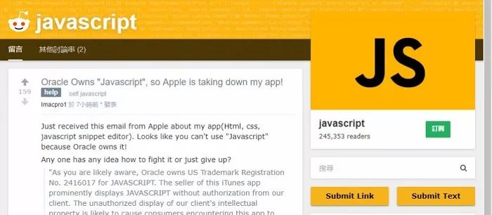 其实对于 JavaScript 的商标归属权问题,曾在 2018 年,便有 iOS 开发者吃过了不知 JavaScript 商标归属的亏。彼时一位 iOS 开发者在其应用程序名称中使用了 JavaScript,没多久,他收到了苹果公司的一封邮件,以及遭到了 Oracle 要求停止侵权的通知。