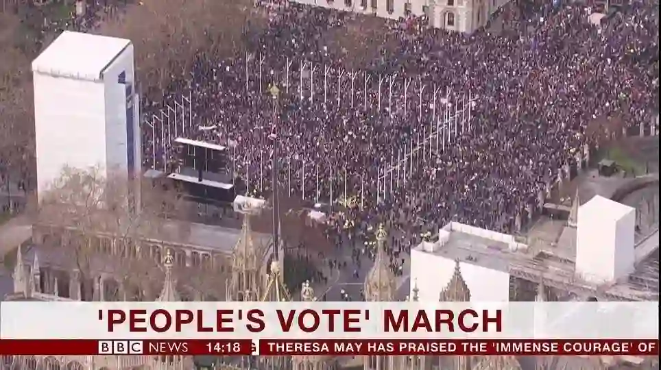 为了抗议这些肉眼可见的不便,上百万英国民众聚集在伦敦的大街上游行,要求政府再公投一次。