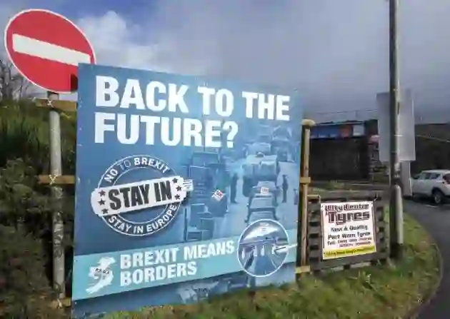 北爱尔兰边境上也立起了一个关于“不建硬边界”的警告