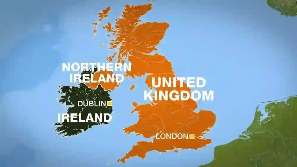 我们打开地图,可以看到爱尔兰岛北边一小块,1.4万平方公里,大概6个郡,人口170万,叫做北爱尔兰,属于英国的统治范围。