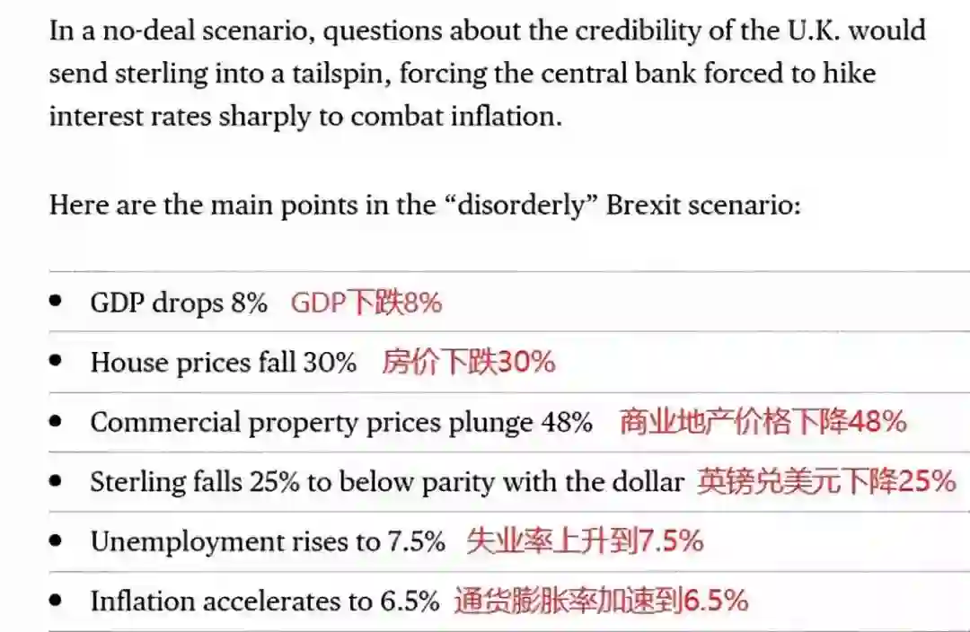 脱欧后,英国还要接受欧盟设置的关税和边境掌控,进出一次需要漫长的通关手续,对英国产业更是灾难。