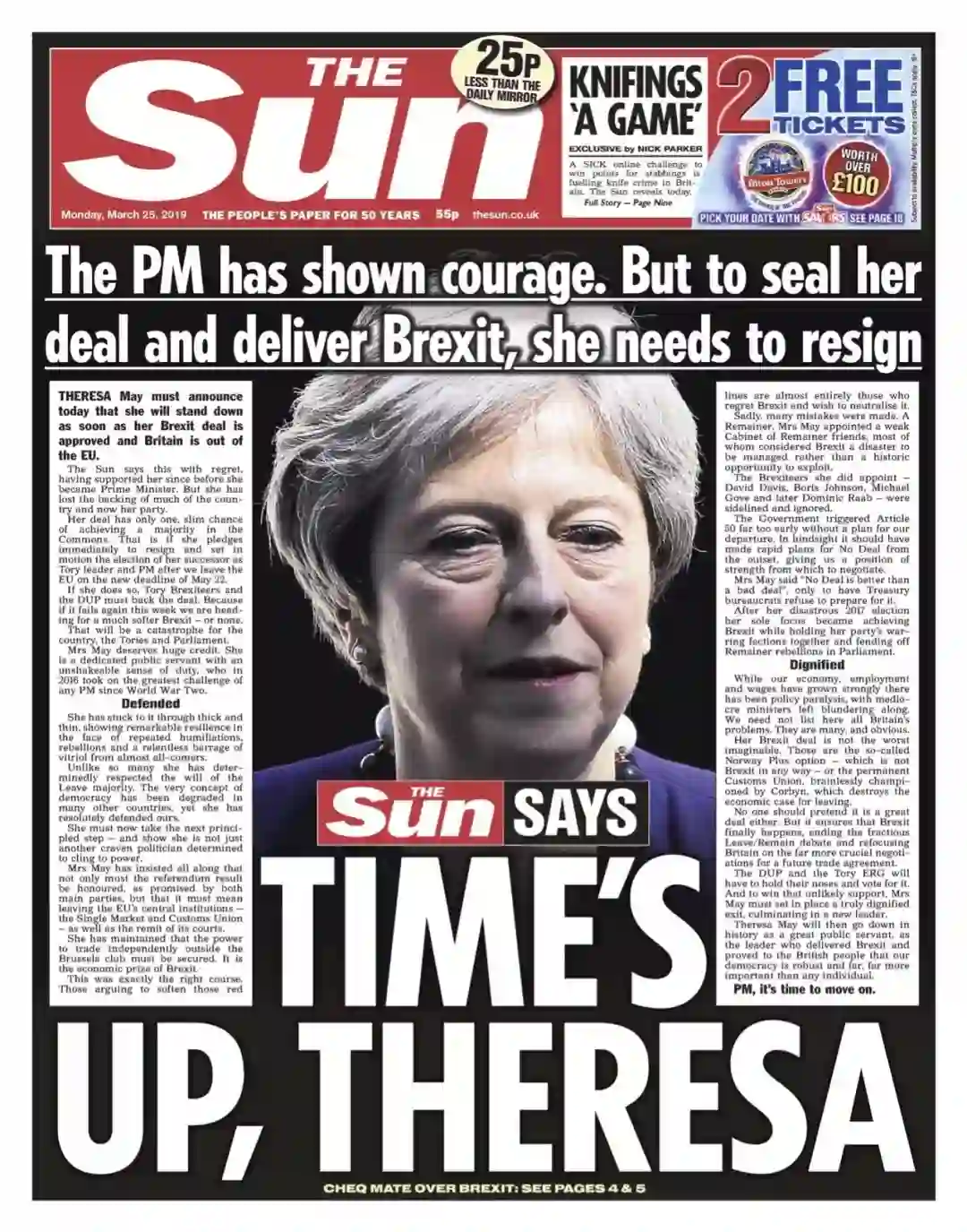 前两周,梅姨为了能够通过脱欧协议,破釜沉舟,表示愿意辞职,以换取议员们支持她的“脱欧协议”。