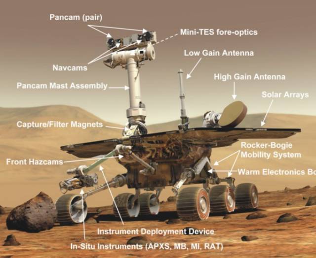 视觉里程计(以下简称VO)早期最著名的应用就是火星漫游车了。据美国喷气推进实验室(JPL)的报道,勇气号火星车从2004年着陆至2005年3月5日的一年多时间里,有184个火星日行驶,其中52个火星日应用了VO,计算收敛成功率为97%;机遇号有172个火星日行驶,其中75个火星日应用了VO,成功率为95%。VO不成功的情况一般是没有足够的特征点、特征点分布范围太小、火星车自身阴影的影响等。