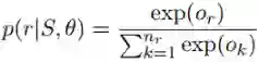 把池化层得到的g输入到softmax层,计算属于每种关系的概率值。论文中使用了Dropout正则化,把池化层的输出g以r的概率随机丢弃,得到的softmax层的输出为: