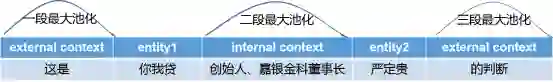 如下图,把一个句子按两个实体切分为前、中、后三部分的词语,然后将一般的最大池化层相应地划分为三段最大池化层,从而获取句子的结构信息。