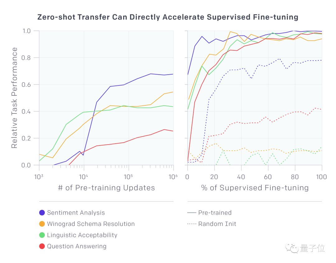 这种方法延续了我们之前的情绪神经元研究。此处,我们希望能对这种想法做进一步探索:我们是否而能够开发一个模型,在大规模数据下以非监督的方法对其进行训练,然后对其调参,使其能在多种不同任务上获得好的表现?