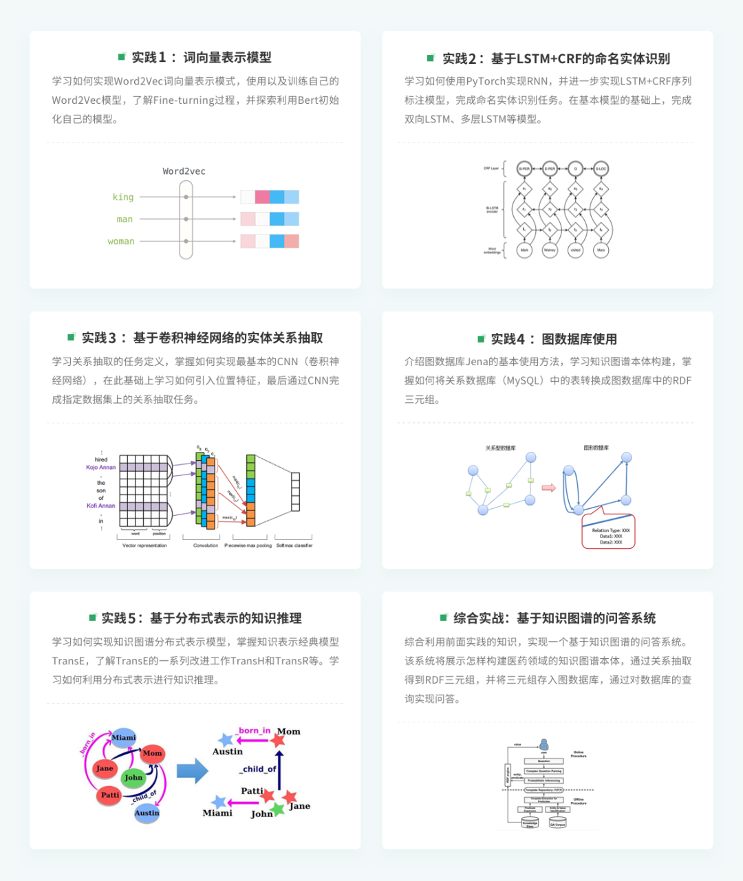 课程细致讲解理论的同时,结合知识图谱各个阶段的核心技术通过实践项目,帮助大家对知识图谱有更广泛的认识。