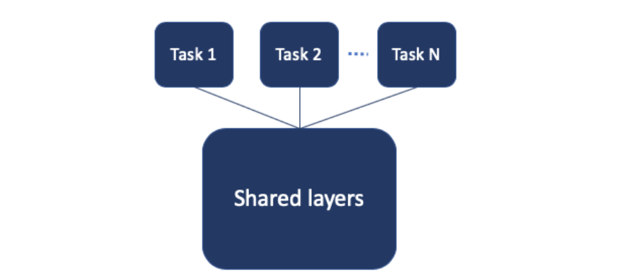 我们准备从参数硬共享(hard parameter sharing)的基础方法开始。硬共享表示我们使用一个共享的子网络,下接各个任务特定的子网络。