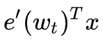 需要注意的是这里每个词对应到两个词向量,在上面的公式中都有体现,其中 e(wt) 是词的输入向量,而 e'(wt) 则是词的输出向量,或者更准确的来讲,前者是 CBOW 输入层中跟词 wt 所在位置相连的所有边的权值(其实这就是词向量)组合成的向量,而是输出层中与词 wt 所在位置相连的所有边的权值组合成的向量,所以把这一向量叫做输出向量。
