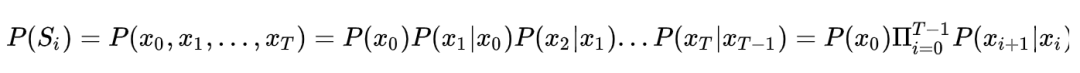 这个公式足够简单,但问题是全人类所有历史的语料这种统计显然无法实现,因此为了将这个不可能的统计任务变得可能,有人将文本不当做一个整体,而是把它拆散成一个个的词,通过每个词之间的概率关系,从而求得整个文本的概率大小。假定句子长度为 T,词用 x 表示,即: