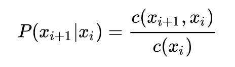 并且把词频的统计用来估计这个语言模型中的条件概率,如下: