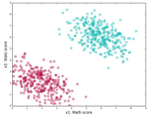 假设你们的大学开设了一项机器学习课程,课程的讲师发现那些擅长数学或者统计学的学生往往表现的最好。课程结束之后,老师们记录了注册课程的学生的分数,他们对每一个学生根据其在机器学习课程上的表现加上了一个标签:「好」或者「坏」。