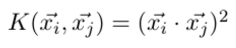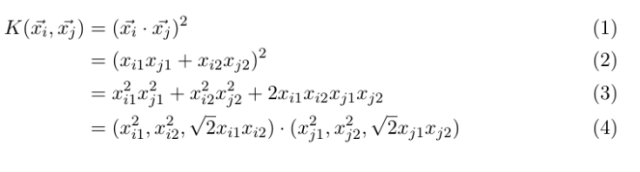 如果数据集中有 n 个点,SVM 只需要将所有点两两配对的点积以寻找分类器。仅此而已。当我们需要将数据映射到高维空间的时候也是这样,不需要向 SVM 提供准确的映射,而是提供映射空间中所有点两两配对的点积。